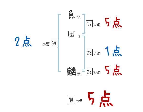 魚田麟さんの画数の鑑定結果
