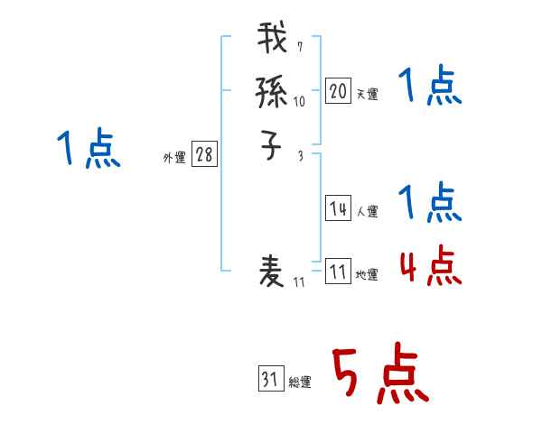 我孫子麦さんの画数の鑑定結果