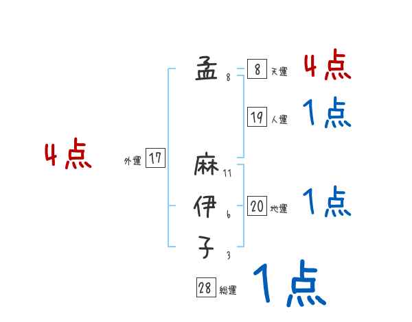 孟麻伊子さんの画数の鑑定結果