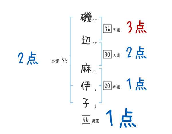 磯辺麻伊子さんの画数の鑑定結果