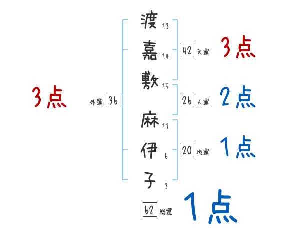 渡嘉敷麻伊子さんの画数の鑑定結果