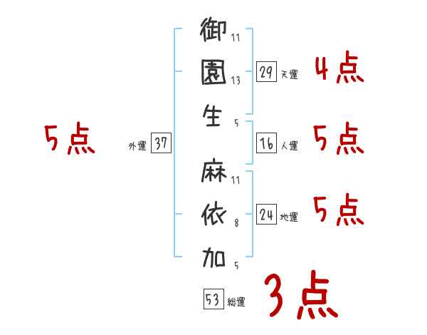 御園生麻依加さんの画数の鑑定結果