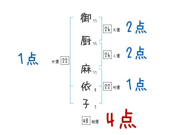 御厨麻依子さんの画数の鑑定結果