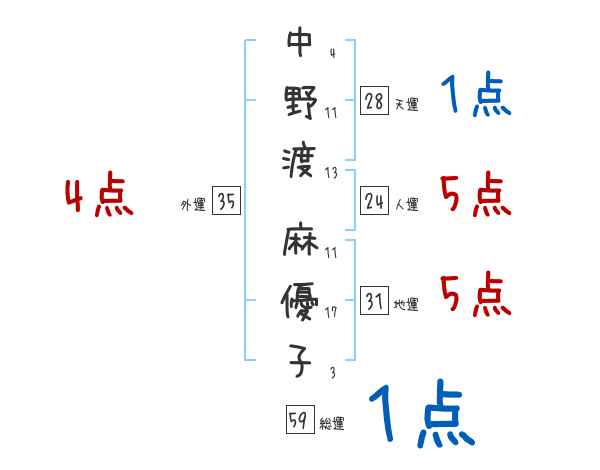 中野渡麻優子さんの画数の鑑定結果