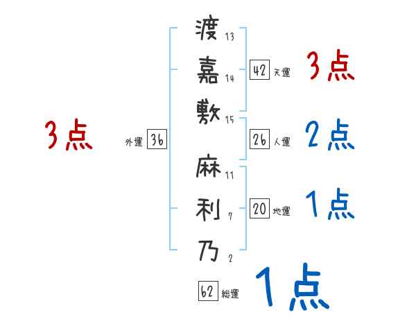 渡嘉敷麻利乃さんの画数の鑑定結果