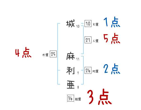 城麻利亜さんの画数の鑑定結果