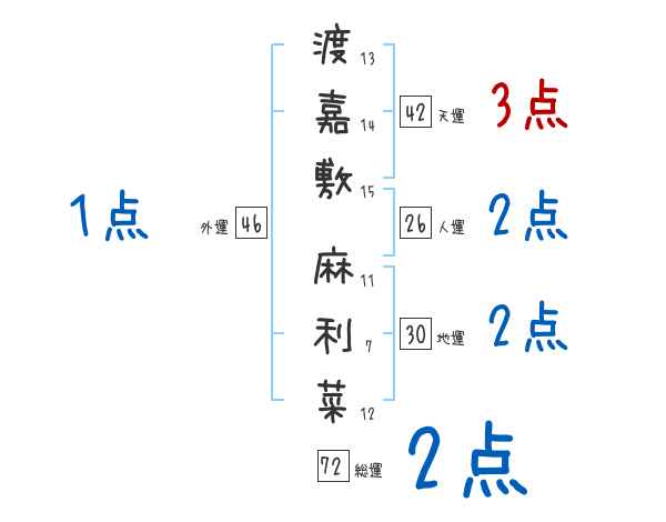 渡嘉敷麻利菜さんの画数の鑑定結果
