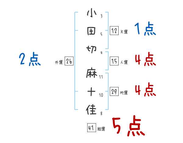 外運![]() | 小田切麻十佳さんの外運は26画の2つ星!波瀾万丈かも。信頼できる人を大事にしましょう。 生活面を象徴する運勢です。外部から受ける影響力を表し、結婚運、家庭運や職場、環境への順応性を表します。 |