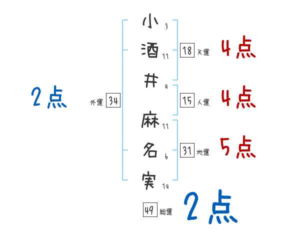 小酒井麻名実さんの画数の鑑定結果