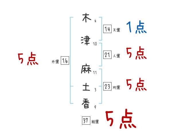 木津麻土香さんの画数の鑑定結果