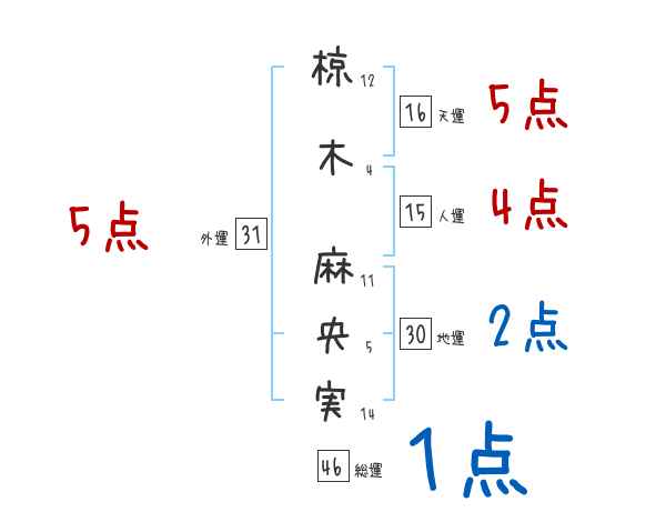 天運![]() | 椋木麻央実さんの天運は16画の5つ星!人望が厚く大きく発展する。逆転成功が見える。 家系が持つ宿命的な運勢を表します。祖先から受け継いだ苗字ですので自分の力が及びません。家柄を象徴します。 |