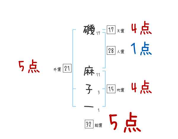 磯麻子一さんの画数の鑑定結果