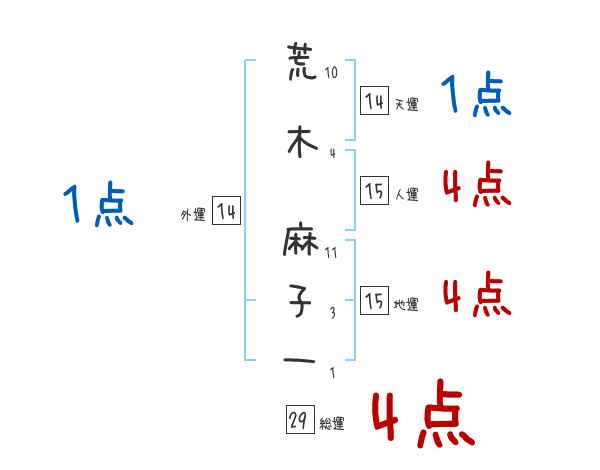 荒木麻子一さんの画数の鑑定結果