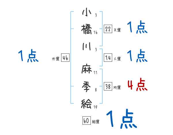 小橋川麻季絵さんの画数の鑑定結果