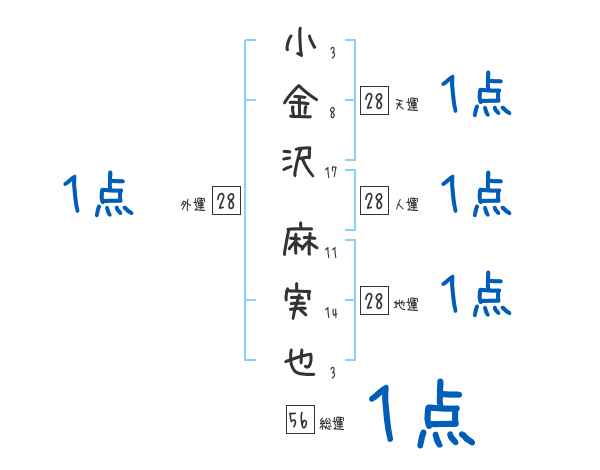 天運![]() | 小金沢麻実也さんの天運は28画の1つ星!家庭環境に注意。スポーツで活躍できる能力があるかも。 家系が持つ宿命的な運勢を表します。祖先から受け継いだ苗字ですので自分の力が及びません。家柄を象徴します。 |