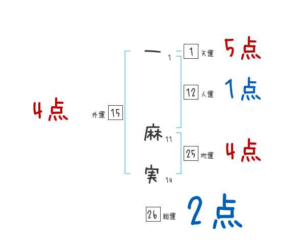 総運![]() | 一麻実さんの総運は26画の2つ星!波瀾万丈かも。信頼できる人を大事にしましょう。 あなたの人生を表す1番重要な運勢です。生涯を通じて影響する総合運となり、主に50歳以降の晩年期に影響を及ぼします。 |