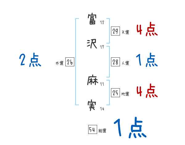 富沢麻実さんの画数の鑑定結果