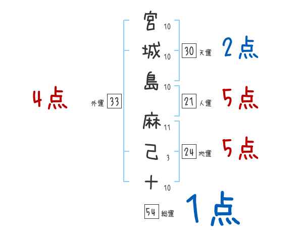 宮城島麻己十さんの画数の鑑定結果