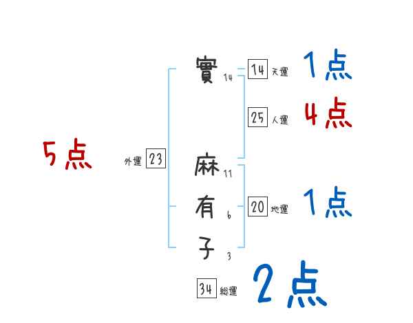 實麻有子さんの画数の鑑定結果