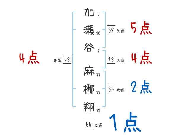 加瀬谷麻梛翔さんの画数の鑑定結果