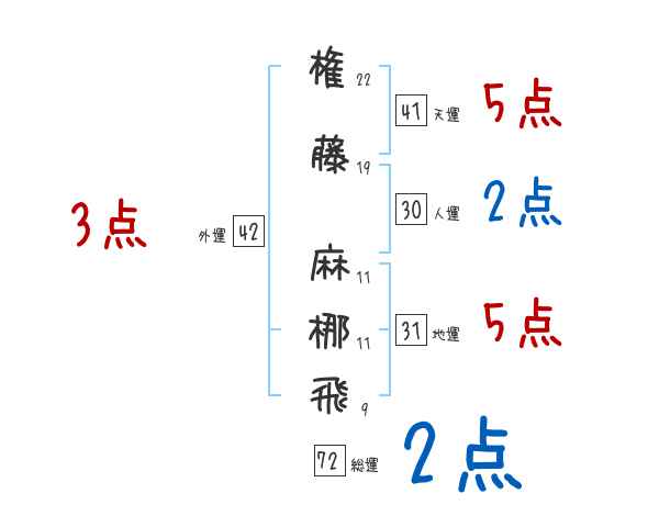 天運![]() | 権藤麻梛飛さんの天運は41画の5つ星!大志を抱き、目標に向かって実力を発揮し達成する。温和な性格。 家系が持つ宿命的な運勢を表します。祖先から受け継いだ苗字ですので自分の力が及びません。家柄を象徴します。 |