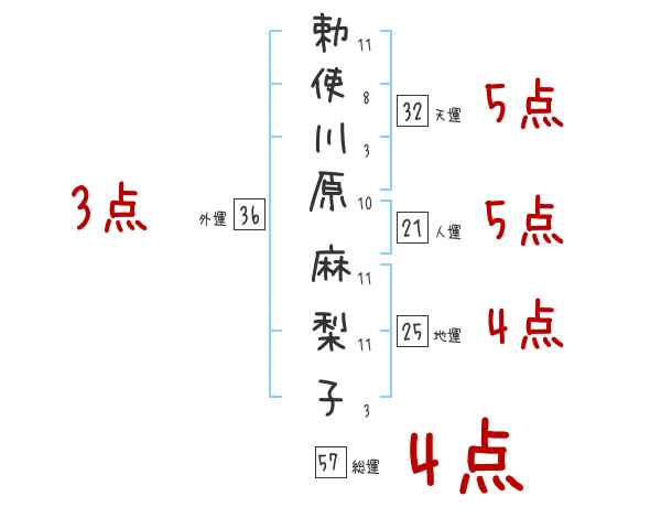 勅使川原麻梨子さんの画数の鑑定結果