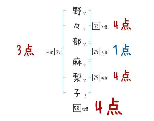 野々部麻梨子さんの画数の鑑定結果