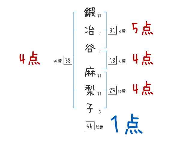 鍛冶谷麻梨子さんの画数の鑑定結果