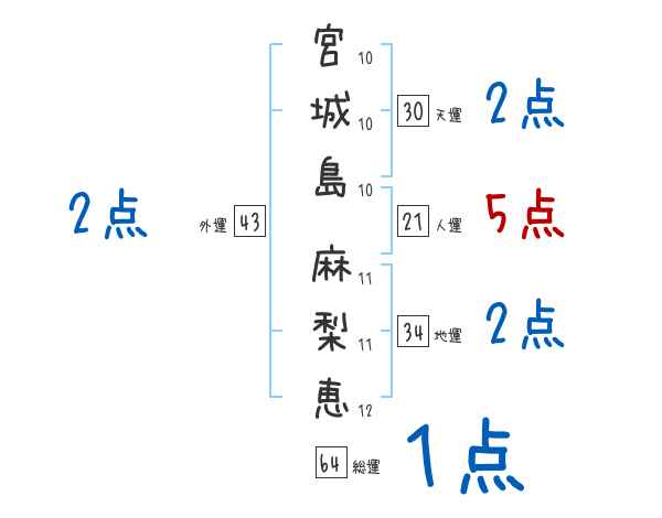 宮城島麻梨恵さんの画数の鑑定結果