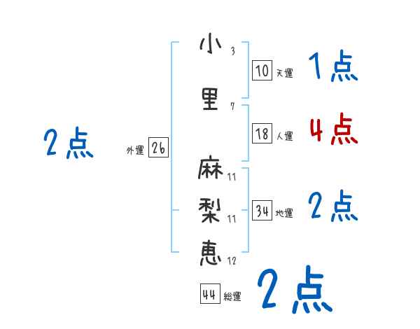 小里麻梨恵さんの画数の鑑定結果
