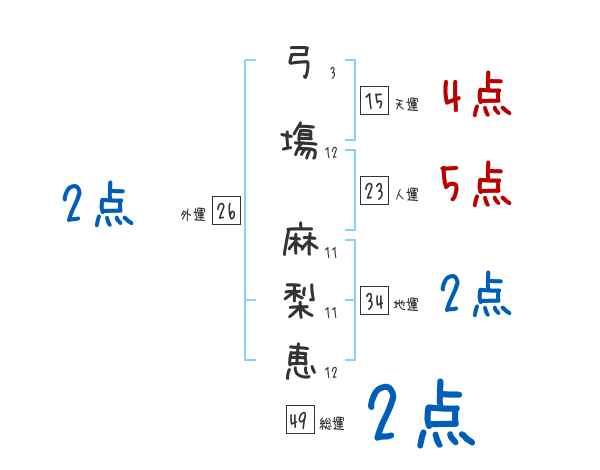 弓塲麻梨恵さんの画数の鑑定結果