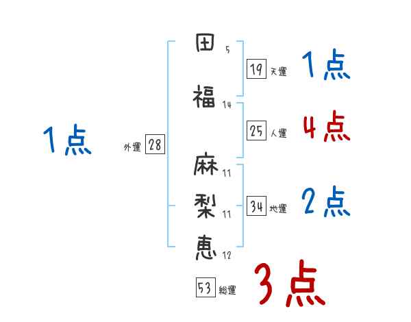 外運![]() | 田福麻梨恵さんの外運は28画の1つ星!家庭環境に注意。スポーツで活躍できる能力があるかも。 生活面を象徴する運勢です。外部から受ける影響力を表し、結婚運、家庭運や職場、環境への順応性を表します。 |