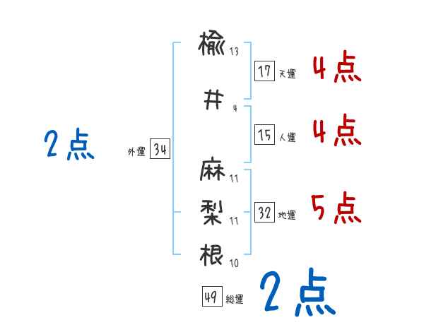 地運![]() | 楡井麻梨根さんの地運は32画の5つ星!柔軟性があり成功する。チャンスが多く金運が良い。 個性を表す基礎的な運勢です。性格形成や対人関係、行動力など家庭環境に影響されます。主に誕生してから20歳くらいまでの若年期の運勢を表します。 |