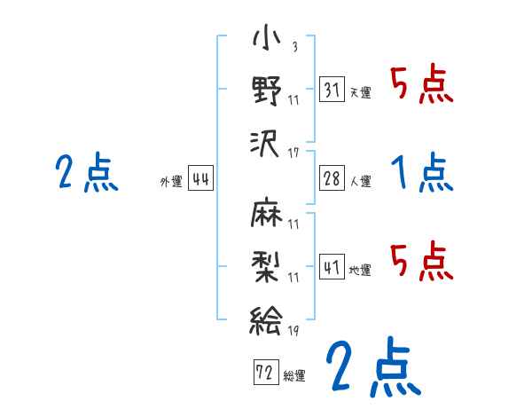 小野沢麻梨絵さんの画数の鑑定結果
