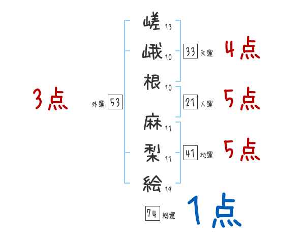 嵯峨根麻梨絵さんの画数の鑑定結果