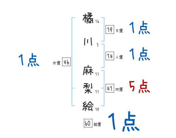 橘川麻梨絵さんの画数の鑑定結果