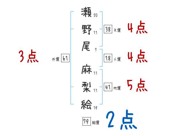 瀬野尾麻梨絵さんの画数の鑑定結果