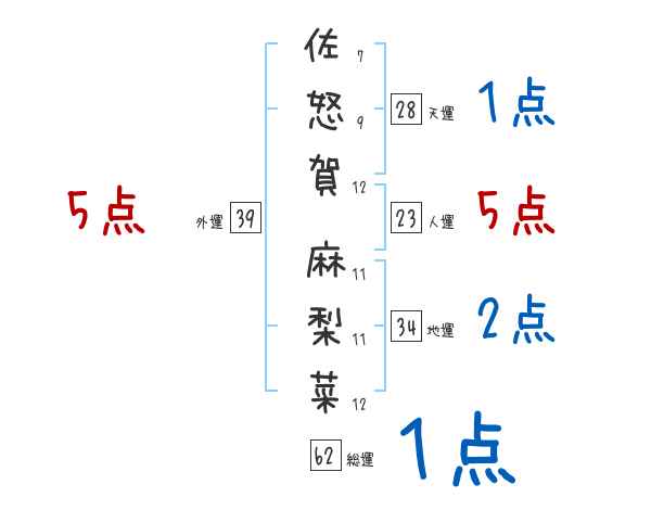 佐怒賀麻梨菜さんの画数の鑑定結果