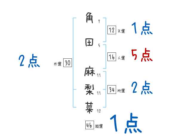 角田麻梨菜さんの画数の鑑定結果