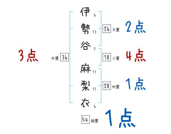 伊勢谷麻梨衣さんの画数の鑑定結果