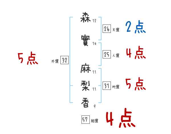 森實麻梨香さんの画数の鑑定結果