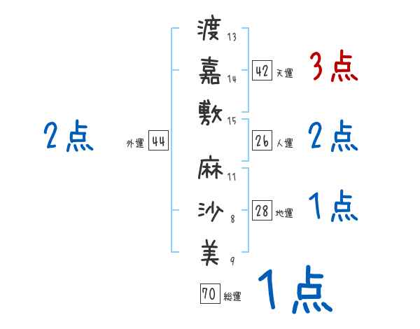 渡嘉敷麻沙美さんの画数の鑑定結果
