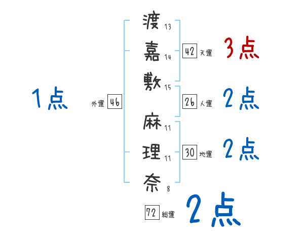 渡嘉敷麻理奈さんの画数の鑑定結果