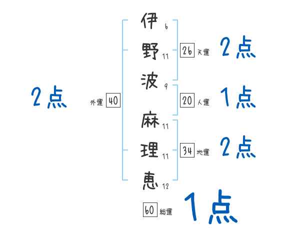 天運![]() | 伊野波麻理恵さんの天運は26画の2つ星!波瀾万丈かも。信頼できる人を大事にしましょう。 家系が持つ宿命的な運勢を表します。祖先から受け継いだ苗字ですので自分の力が及びません。家柄を象徴します。 |