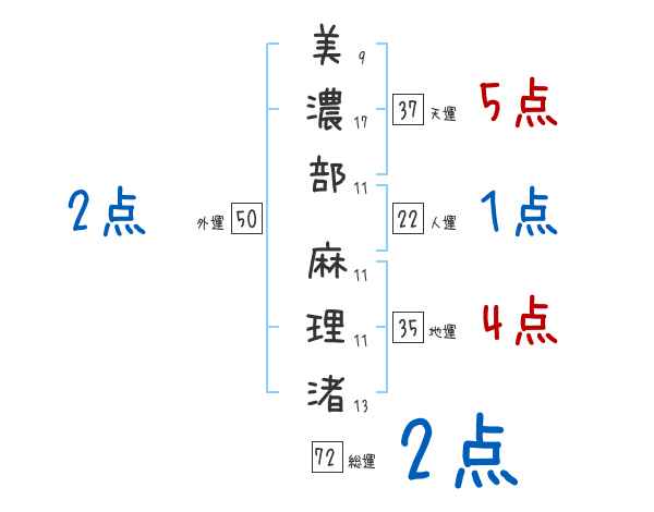 美濃部麻理渚さんの画数の鑑定結果