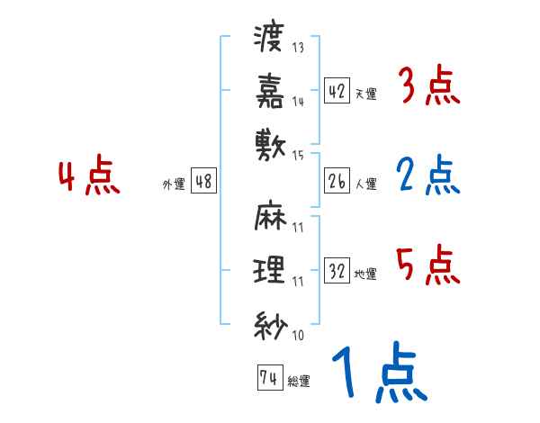 渡嘉敷麻理紗さんの画数の鑑定結果