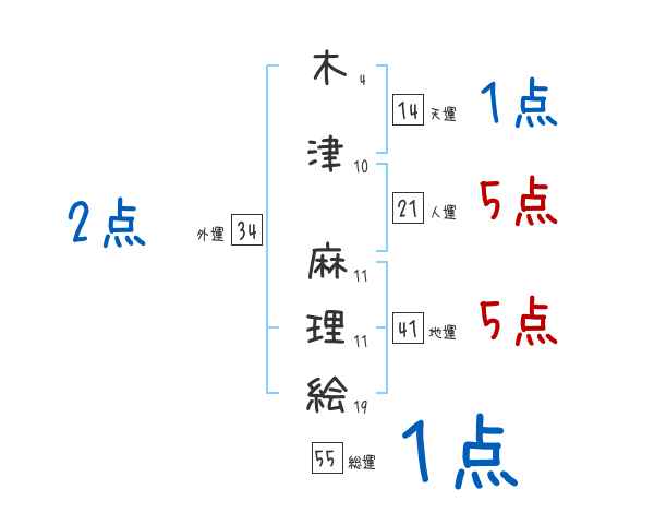 木津麻理絵さんの画数の鑑定結果