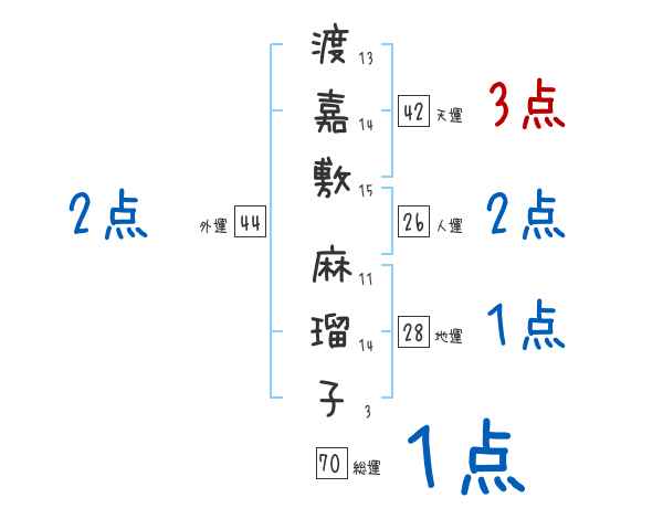 渡嘉敷麻瑠子さんの画数の鑑定結果