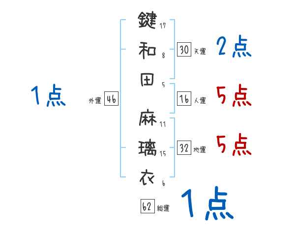 鍵和田麻璃衣さんの画数の鑑定結果