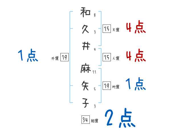 和久井麻矢子さんの画数の鑑定結果